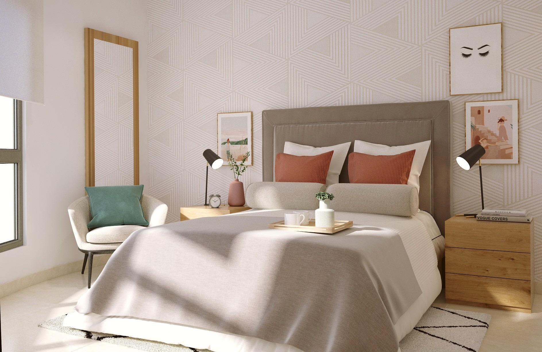 Nowy budynek mieszkalny z ekskluzywnymi apartamentami z 2 sypialniami i 2 łazienkami, z otwartą kuchnią i salonem, dużymi, wbudowanymi szafami, w pełni wyposażonymi łazienkami z ogrzewaniem podłogowym.