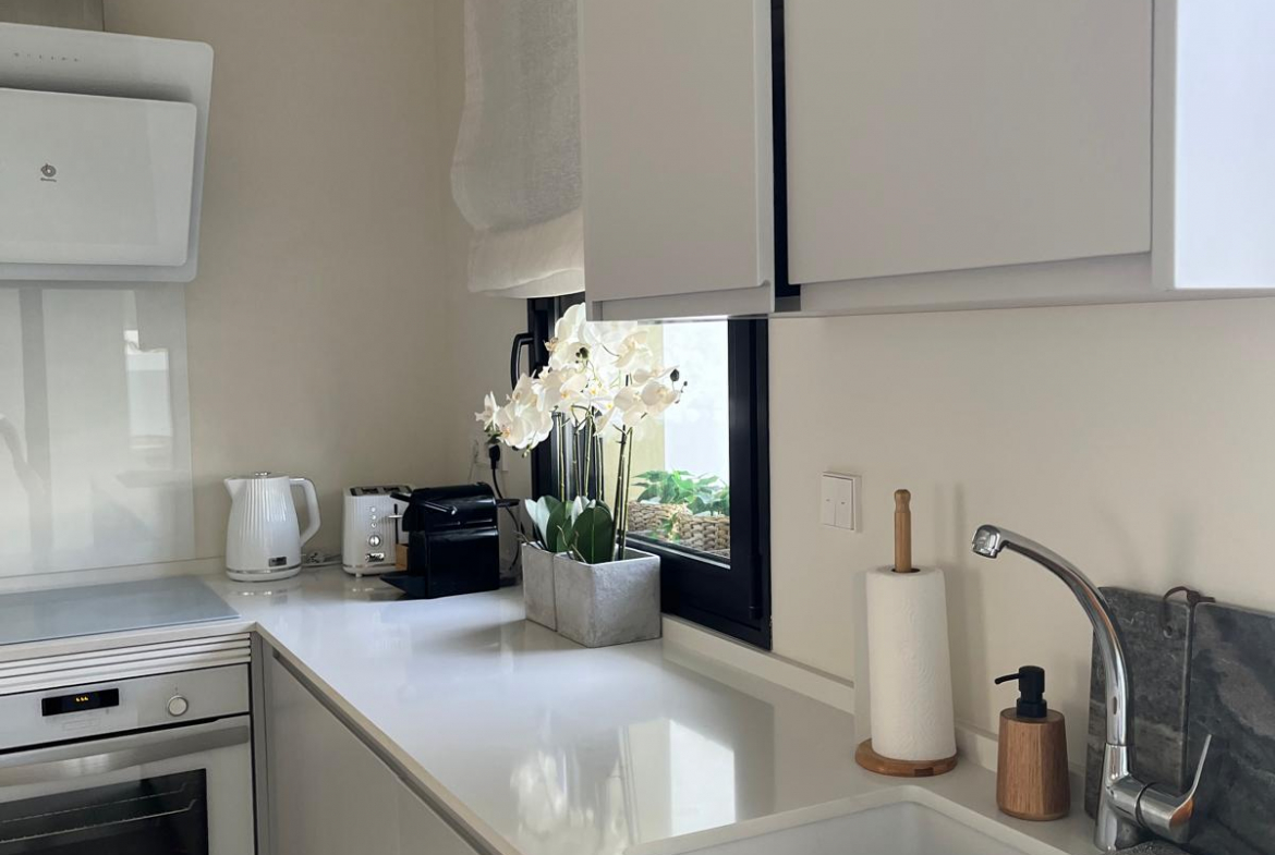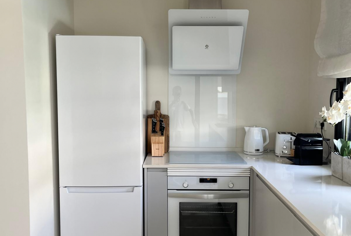 - Wyposażenie AGD wysokiej jakości (pralka, lodówka, płyta indukcyjna, piekarnik, zmywarka)