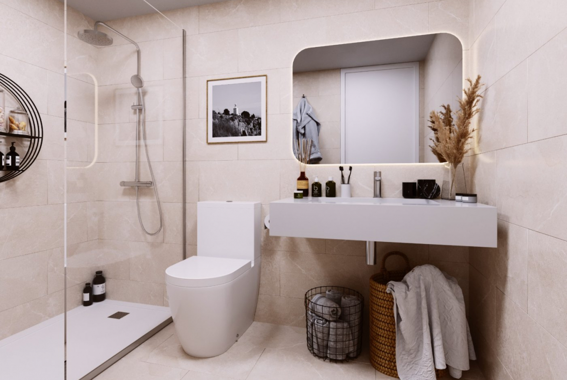 Apartamenty z 2 i 3 sypialniami, 2 łazienkami mają starannie zaprojektowany rozkład i oferują piękne widoki na okoliczne środowisko naturalne lub morze, a także basen i prywatne ogrody na osiedlu.