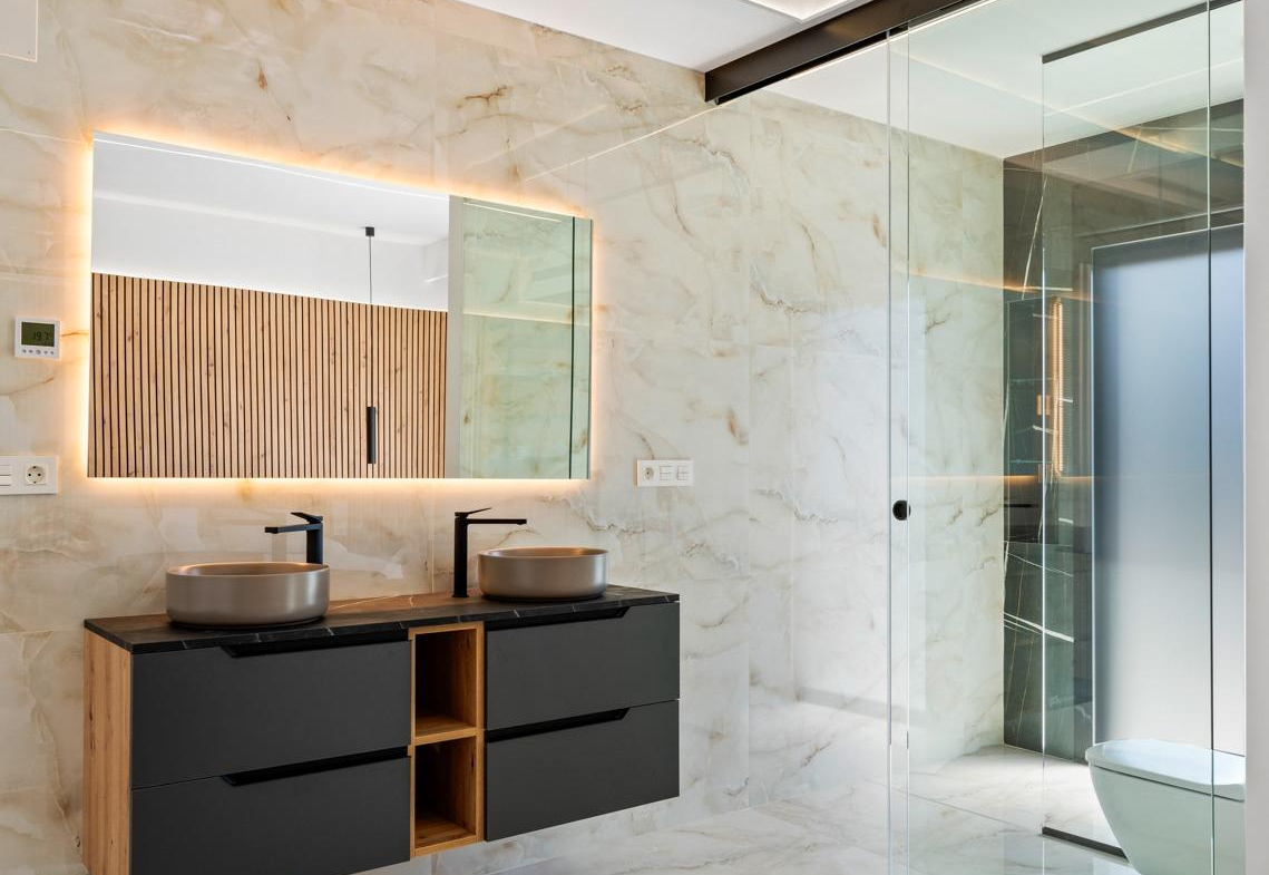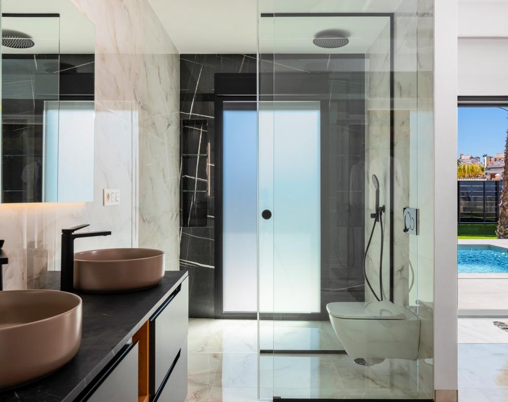 Wille zbudowane są na 1 poziomie i składają się z 3 sypialni, 2 łazienek, otwartej kuchni, salonu z otwartym widokiem na taras, solarium, prywatnego ogrodu z basenem i parkingu.