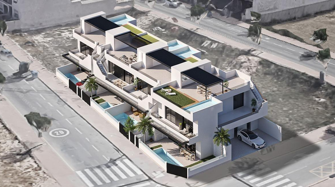 Nowy kompleks mieszkaniowy składający się z pięknych, nowoczesnych apartamentów z 3 sypialniami w bungalowach w San Pedro Del Pinatar.