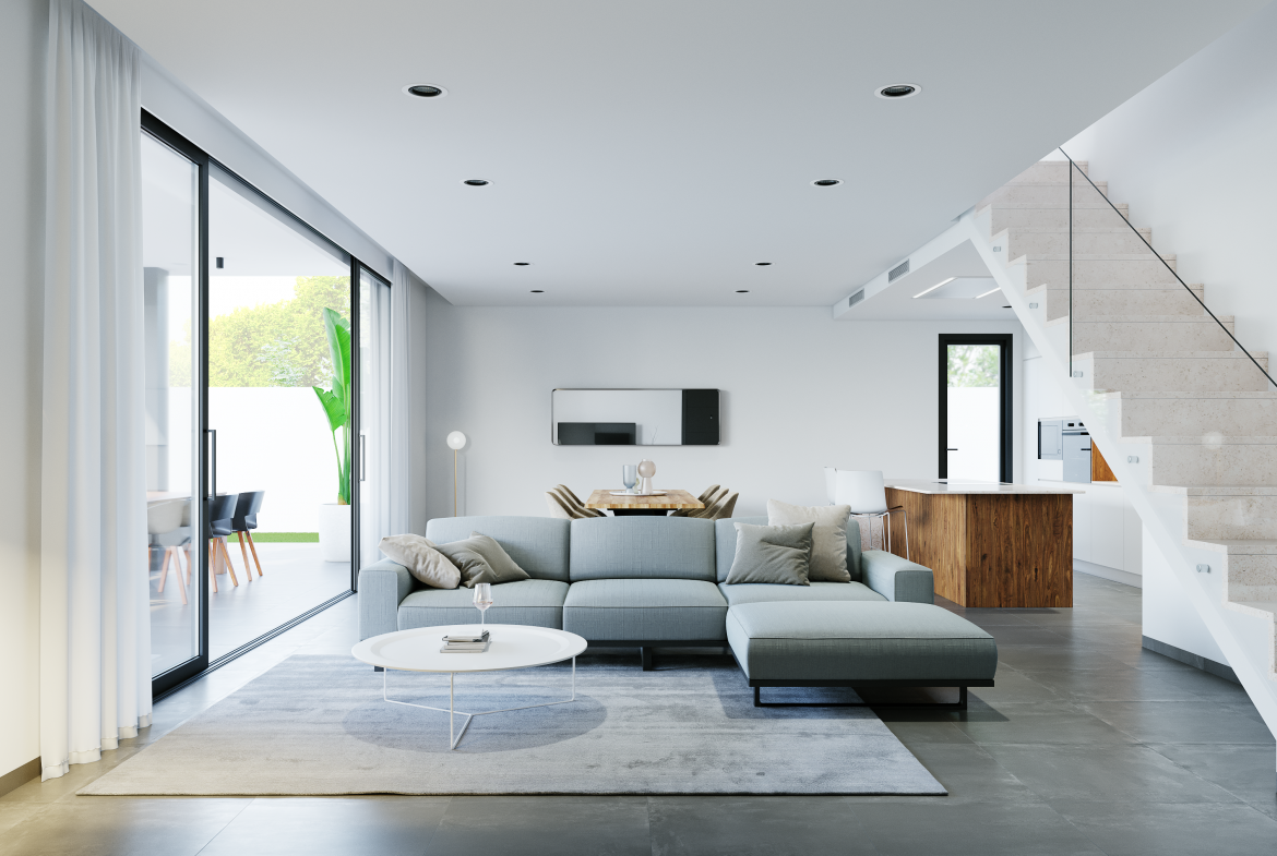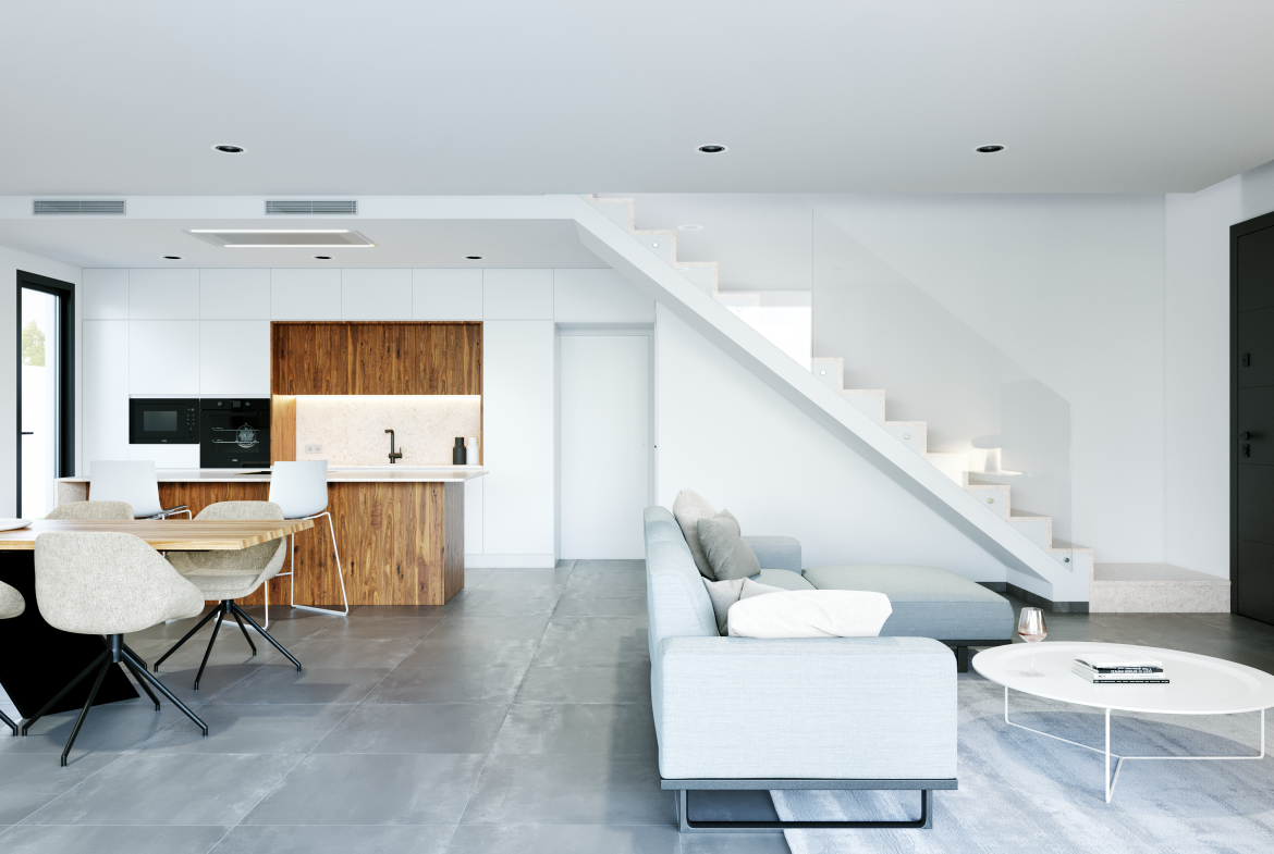 - Podłogi ceramiczne wewnątrz domu i na tarasach, z możliwością wyboru materiałów najwyższej jakości.