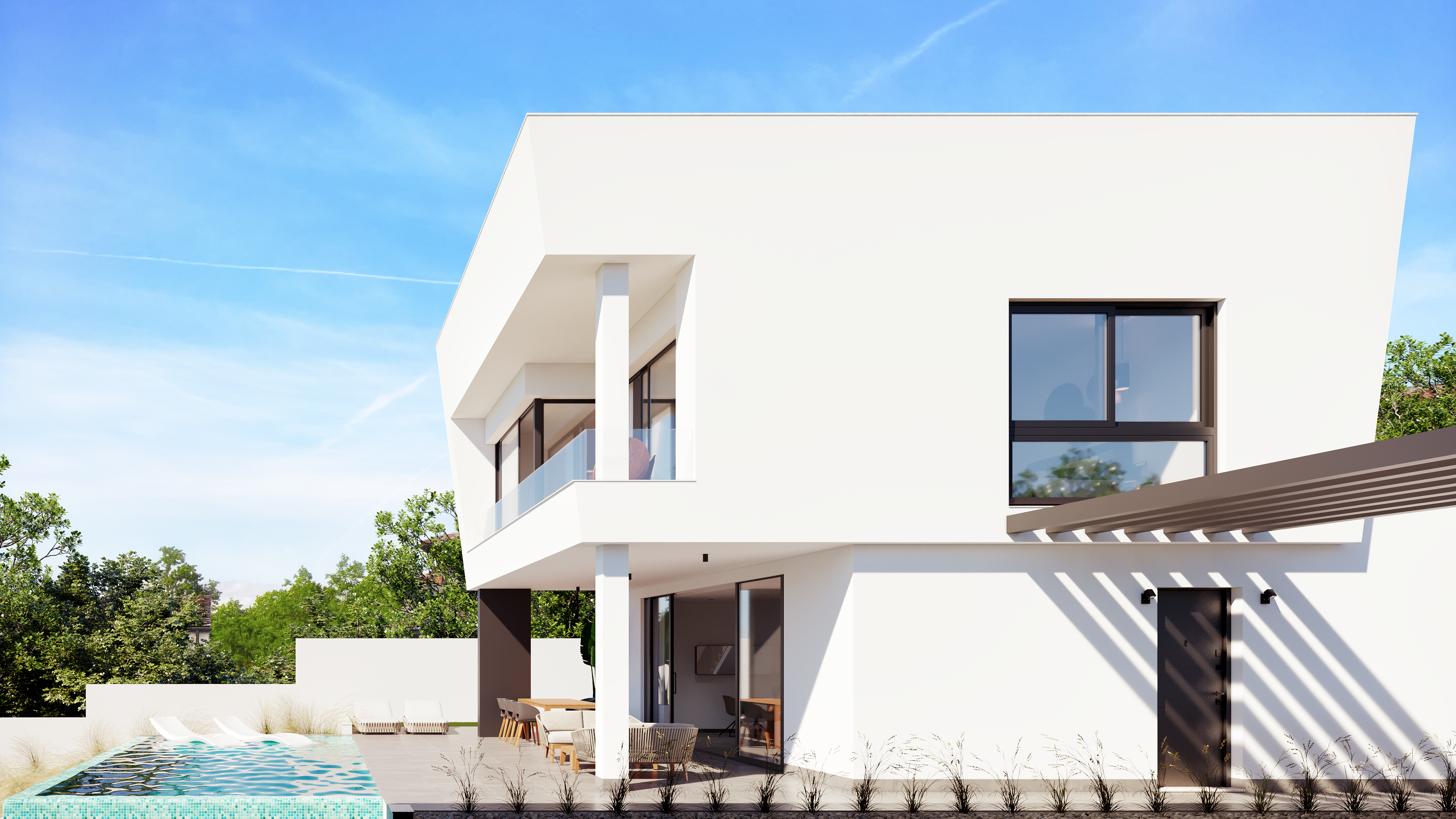 Każda willa oferuje przestronne wnętrza, wysokiej klasy wykończenia oraz rozległe przestrzenie na zewnątrz, z tarasami, prywatnym basenem i solarium – idealne do korzystania z klimatu śródziemnomorskiego przez cały rok. Obie wille będą gotowe do odbioru w grudniu 2025 roku, oferując wyjątkową okazję do posiadania luksusowej nieruchomości w sercu Pinar de Campoverde.