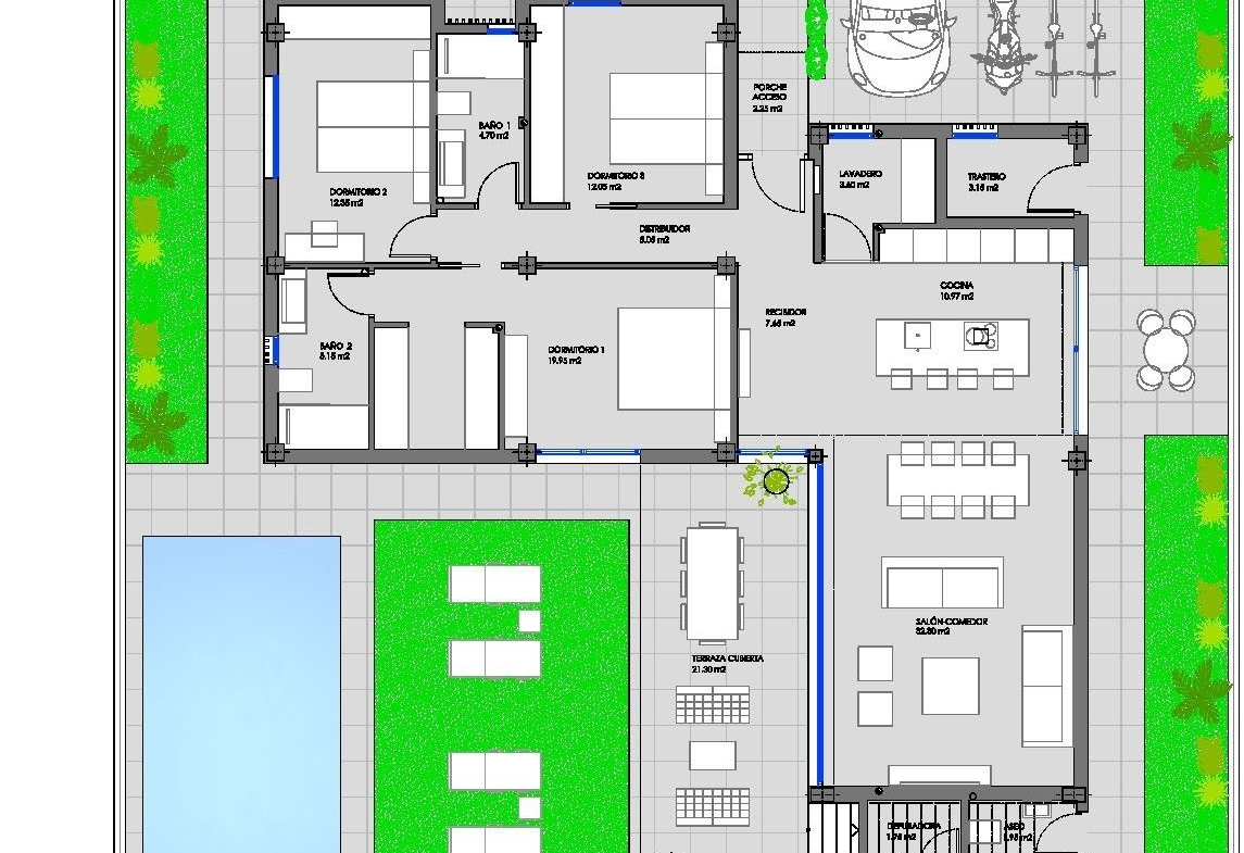 Nowa, parterowa willa z 3 sypialniami, 2 łazienkami z prywatnym solarium, położona 500 metrów od plaż Mar De Cristal.