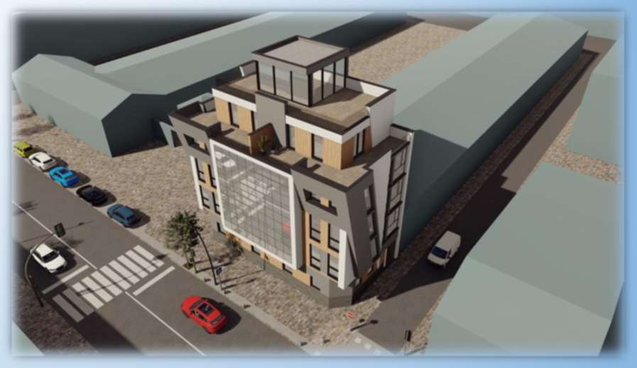 - 4 apartamenty na każdym poziomie, o identycznym układzie: jedna sypialnia, salon z otwartą kuchnią i jadalnią oraz łazienka