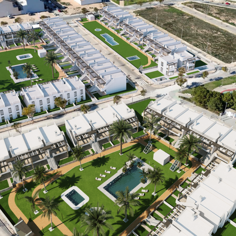 Nowoczesne osiedle Talasa Terra to nowa inwestycja w El Vergel, obejmująca 65 komfortowych apartamentów z 2 sypialniami oraz domów w zabudowie szeregowej z 2 i 3 sypialniami. Projekt został zaprojektowany zgodnie z zasadami zrównoważonego rozwoju i efektywności energetycznej.