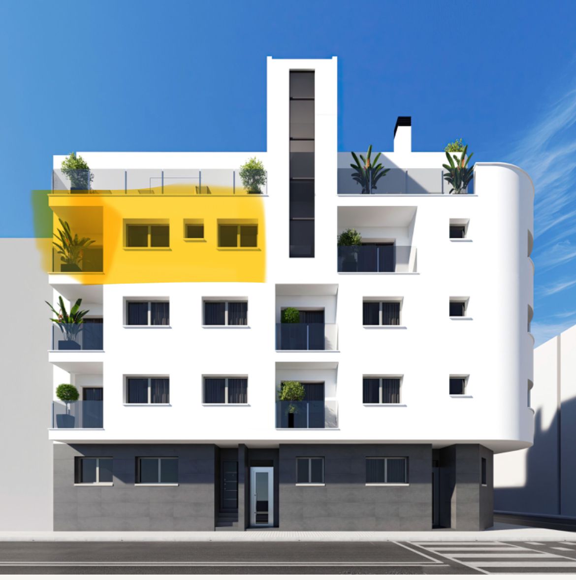 Nowoczesny budynek apartamentowy w bardzo dobrej lokalizacji, w odległości krótkiego spaceru od portu i promenady i plaży (500 m) w centrum Torrevieja i 1 km od dużej plaży Playa del Cura. Projekt składa się łącznie z 12 apartamentów z jedną lub dwiema sypialniami, jedną lub dwiema łazienkami; zapewnia dostęp dla wszystkich mieszkańców do mieszczącego się na dachu budynku solarium ze strefą wypoczynkową i jacuzzi, zapewniając niesamowite widoki na miasto i morze.