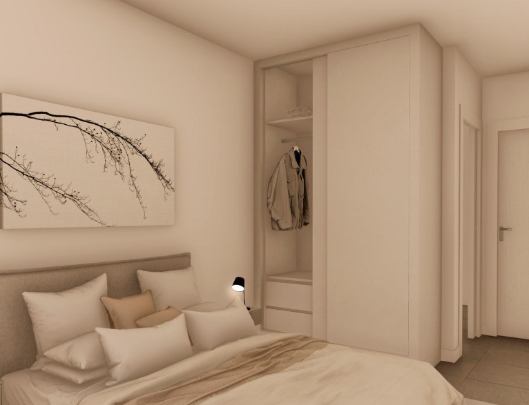 Każdy bungalow został zaprojektowany z dbałością o detale. Wnętrza łączą nowoczesność z funkcjonalnością – oferują wysokiej jakości podłogi, w pełni umeblowaną kuchnię w kolorze białym z elementami w stylu drewna oraz sprzęt AGD w cenie. W łazienkach znajdują się szafki z umywalkami i oświetleniem, a w sypialniach – zabudowane szafy z szufladami i drzwiami przesuwnymi. W każdym domu przygotowano instalację do montażu klimatyzacji kanałowej.