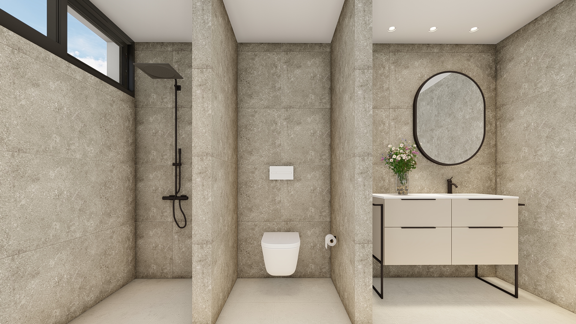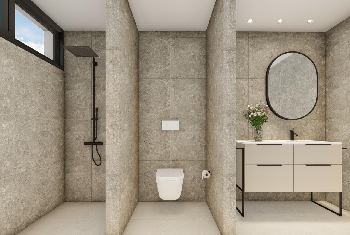 Każda willa została zaprojektowana w nowoczesnym stylu i rozłożona na trzech kondygnacjach. Nieruchomości oferują 3 przestronne sypialnie, 3 łazienki oraz dodatkową toaletę dla gości.