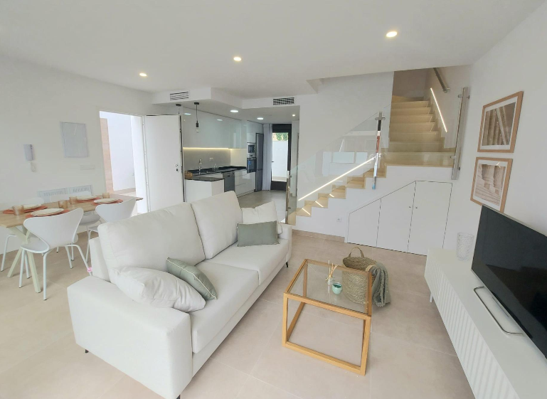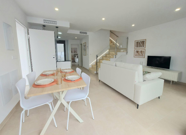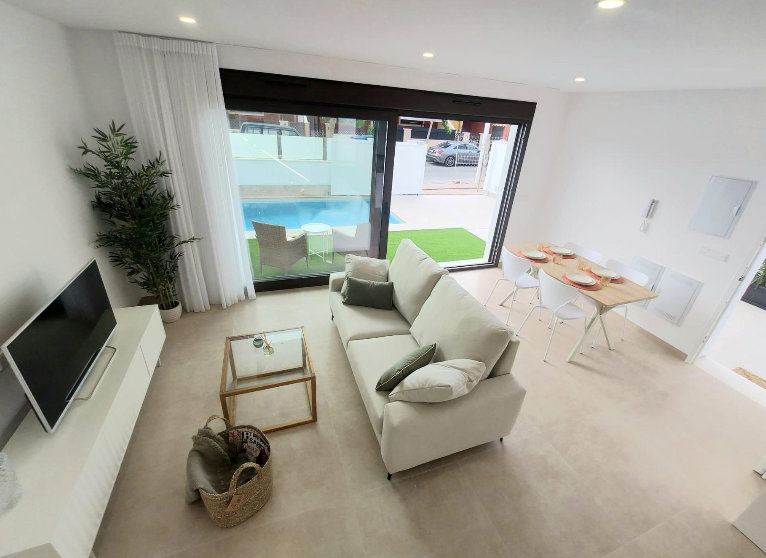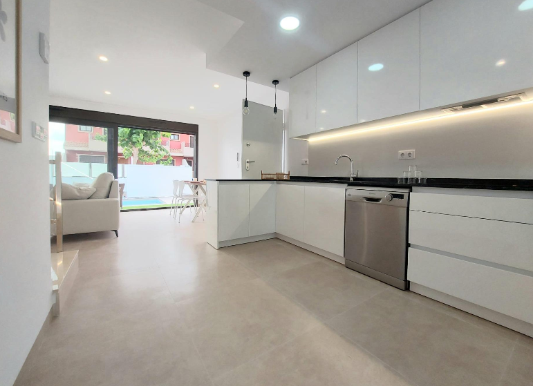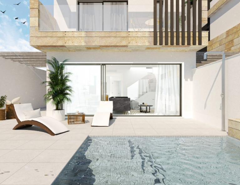 OSTATNIA! Nowoczesna willa w zabudowie bliźniaczej położona w pobliżu centrum San Pedro del Pinatar. Nieruchomości zostały zaprojektowane na dwóch kondygnacjach i oferują 3 sypialnie oraz 3 łazienki. Przestronny salon połączony z kuchnią w stylu amerykańskim zapewnia wygodne miejsce do codziennego życia, a bezpośrednie wyjście na taras i prywatny ogród z basenem umożliwia relaks na świeżym powietrzu.