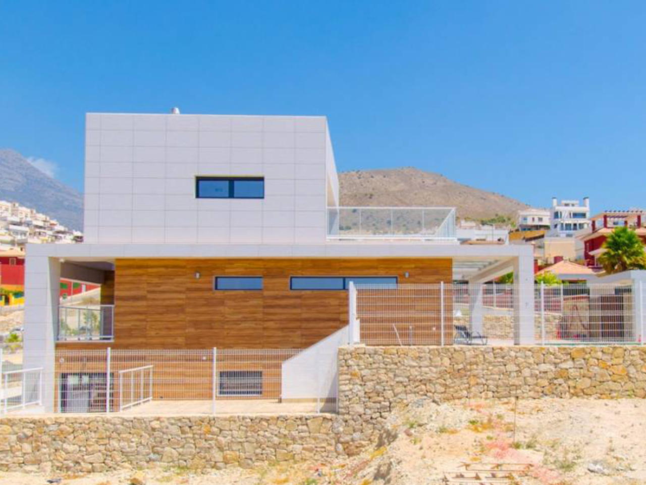 Ta nowoczesna willa znajduje się w doskonałej lokalizacji, zaledwie kilka minut od tętniącego życiem kurortu Benidorm. Położenie w spokojnej okolicy zapewnia prywatność i komfort, jednocześnie oferując szybki dostęp do plaż, restauracji, sklepów oraz licznych atrakcji turystycznych regionu Costa Blanca.