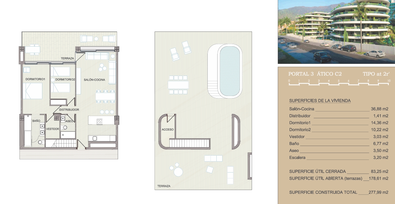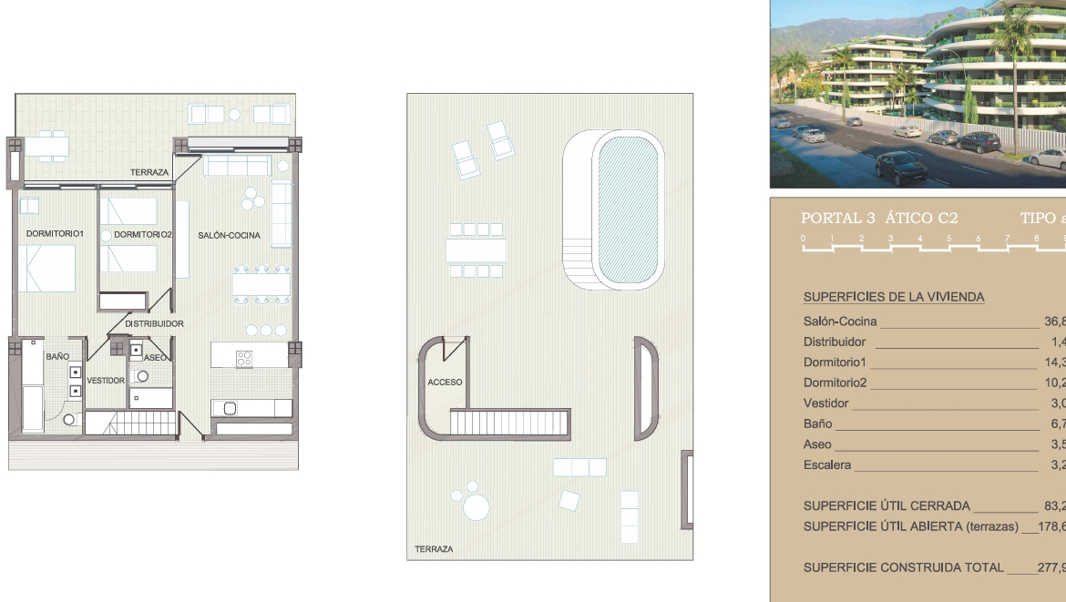• Penthouse’y z dużymi tarasami, prywatnymi jacuzzi oraz spektakularnymi widokami na morze i Teide.