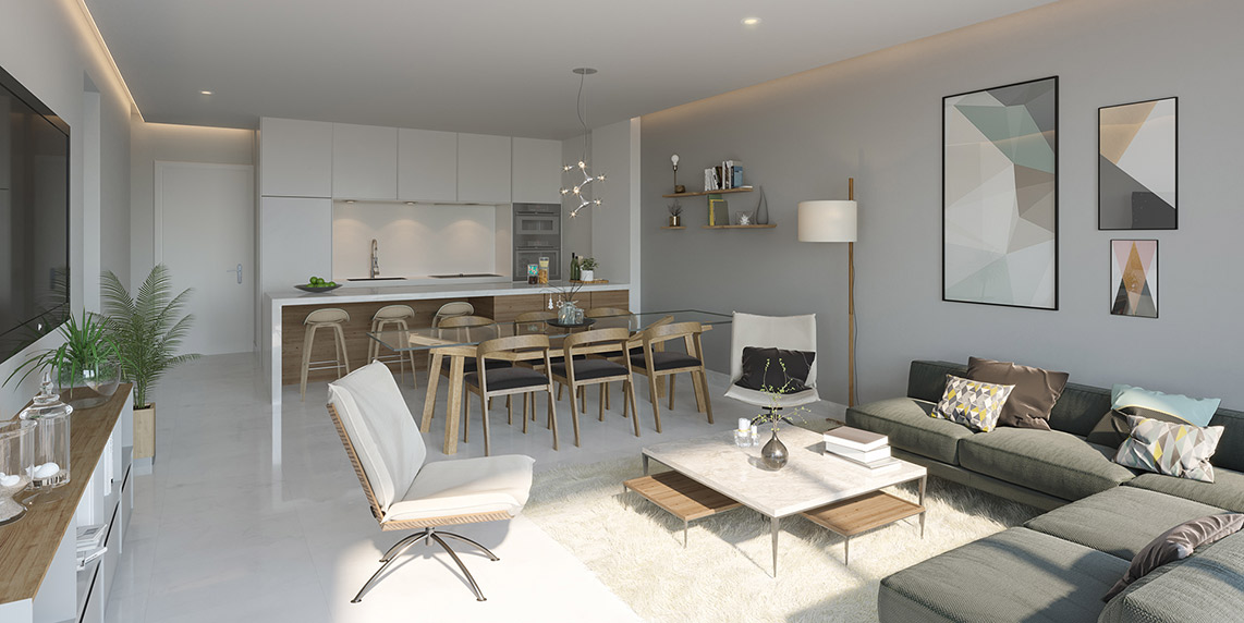 Każdy lokal został zaprojektowany z myślą o świetle i otwartej przestrzeni – duże przeszklenia, przestronne balkony oraz kuchnie z pełnym wyposażeniem AGD (Siemens). Garaż prywatny dopełnia komfortu codziennego życia.