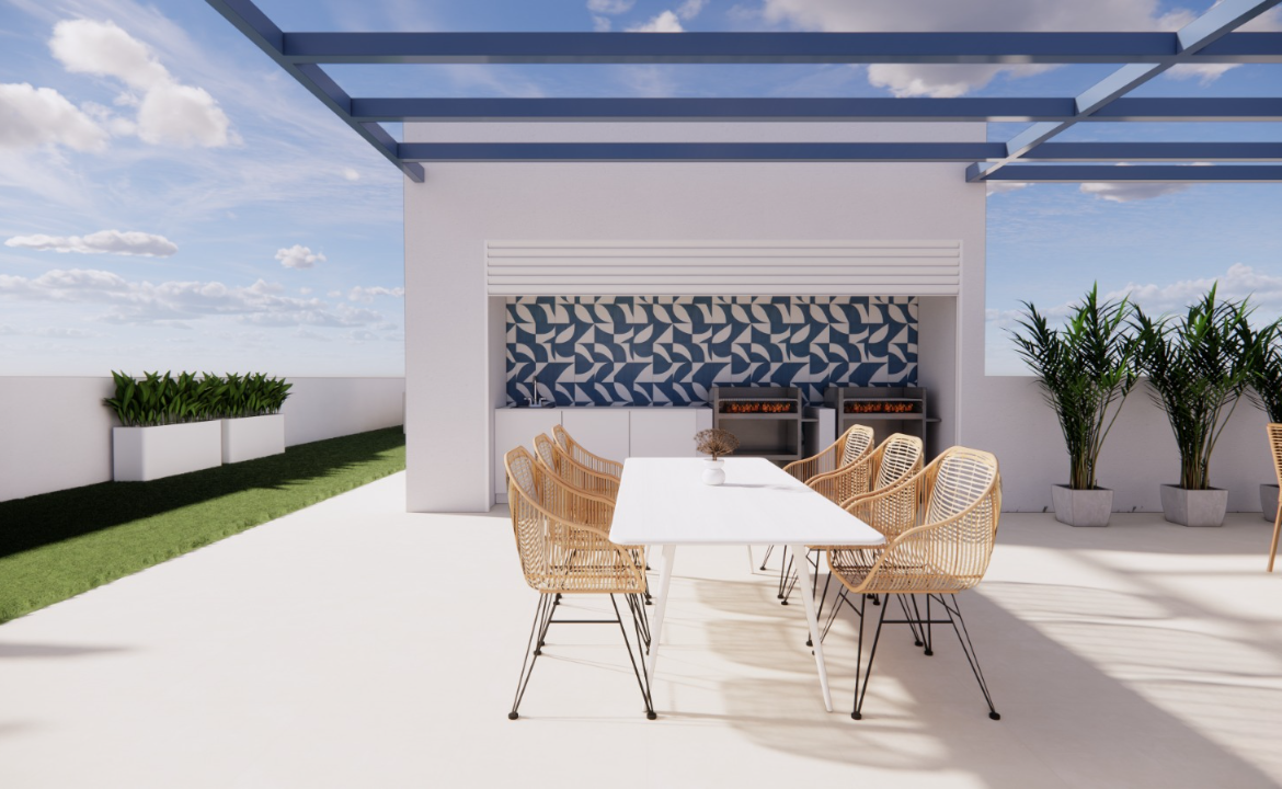 Nowa inwestycja mieszkaniowa w Torre de la Horadada to wyjątkowa propozycja dla osób poszukujących elegancji, komfortu i bliskości morza. Położona w doskonałej lokalizacji – zaledwie 140 metrów od plaży, pomiędzy plażami El Conde i El Puerto, w sąsiedztwie mariny – oferuje idealne warunki do życia i wypoczynku. To kameralne osiedle składa się z ośmiu nowoczesnych apartamentów w stylu śródziemnomorskim, które łączą tradycyjny nadmorski urok z nowoczesną funkcjonalnością.