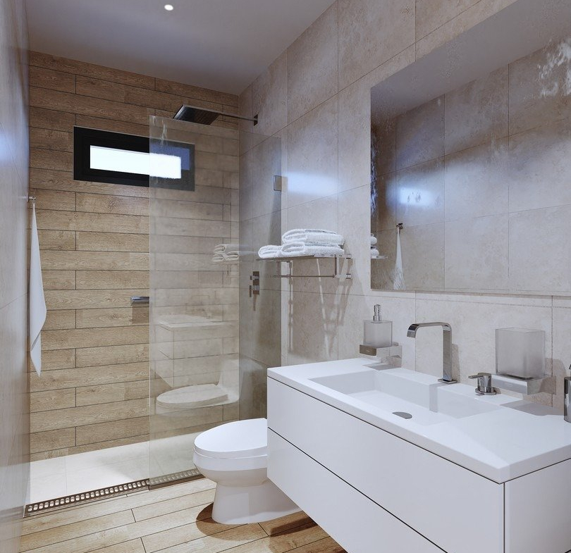 - Kompletnie wyposażone łazienki z toaletą, umywalką z szafką, lustrem oraz prysznicem z parawanem.