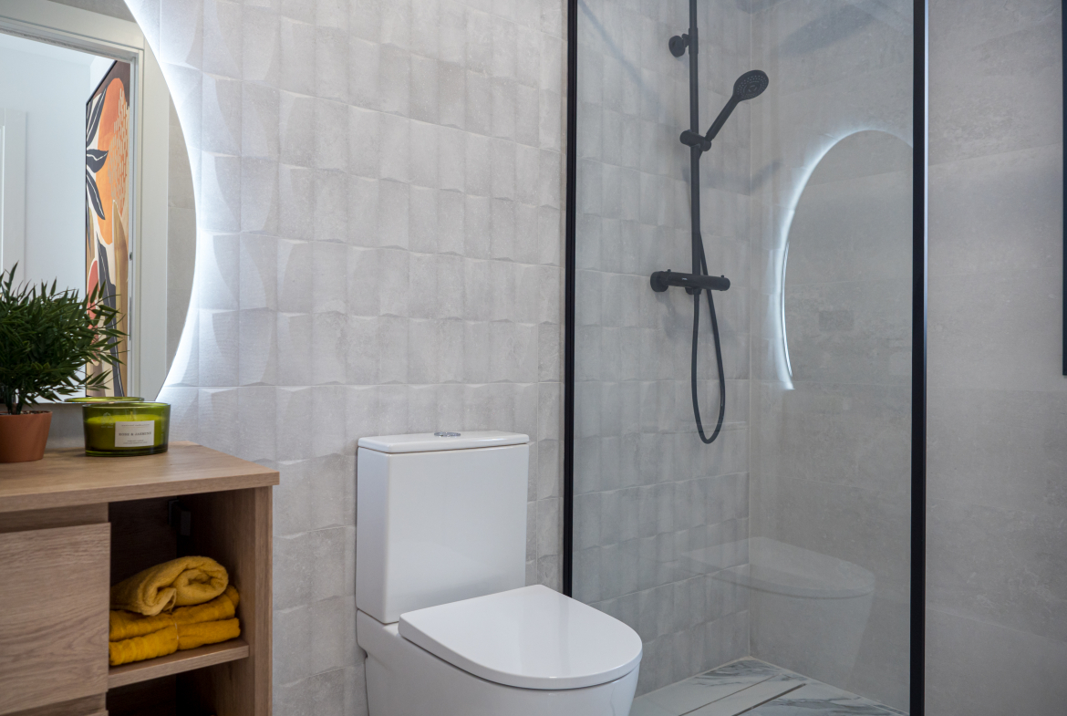 - W pełni wyposażone łazienki z podświetlanymi lustrami i meblami