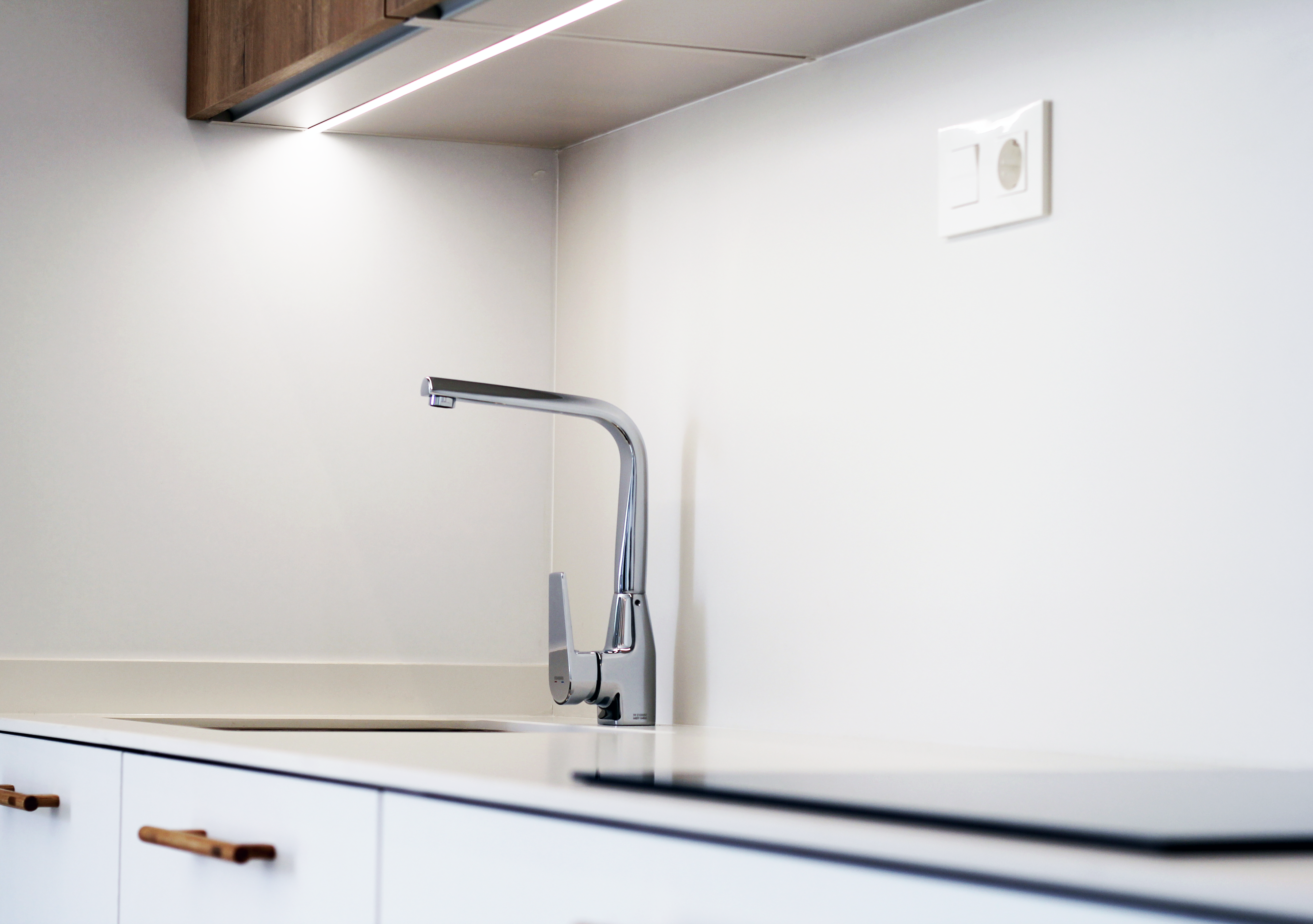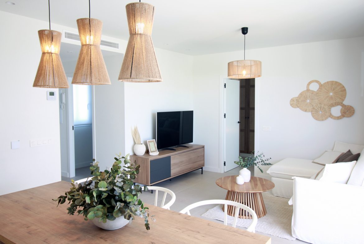 - Jasny salon z otwartą kuchnią, idealny do wspólnego spędzania czasu.