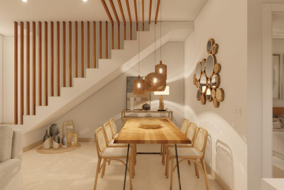 Wnętrze willi składa się z 3 sypialni, 3 łazienek z łazienkami, dużego salonu z otwartą kuchnią, wszystko zlokalizowane na dwóch piętrach.