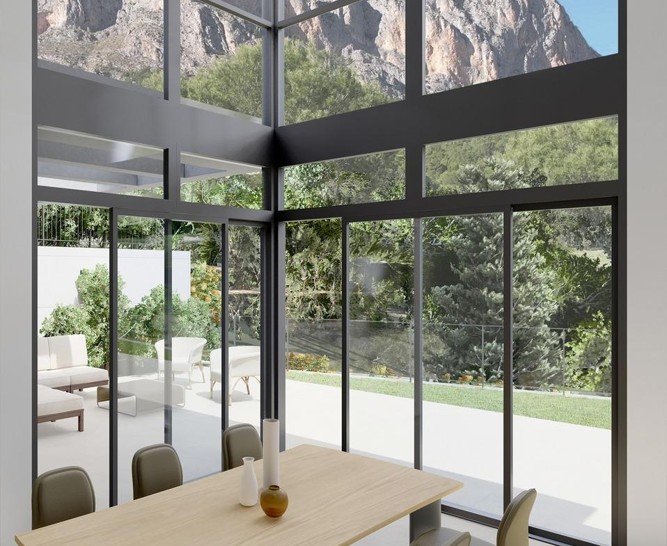 Duże przeszklenia otwierają widok na góry i doliny, tworząc idealne połączenie przestrzeni wewnętrznej i zewnętrznej.