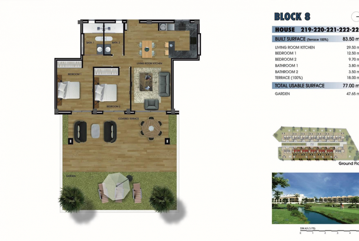 Ten niesamowity kompleks będzie składał się z 244 apartamentów z 2 i 3 sypialniami, podzielonych na 8 bloków i 20 prywatnych willi.