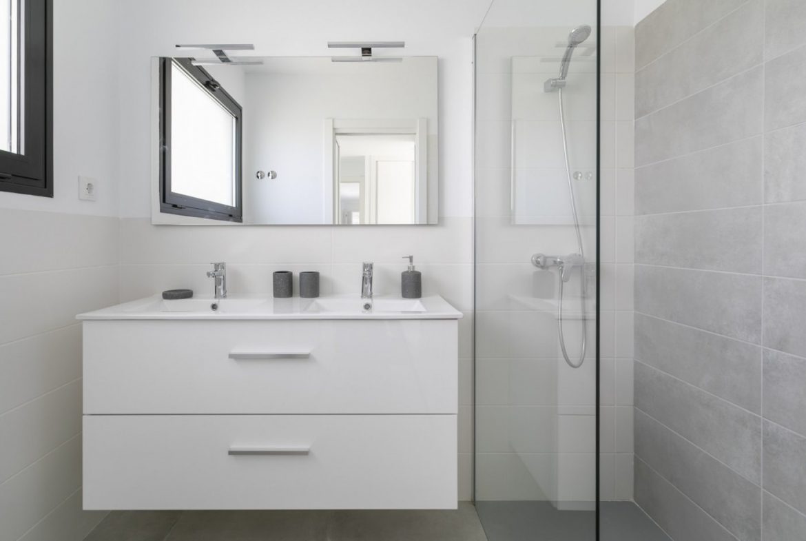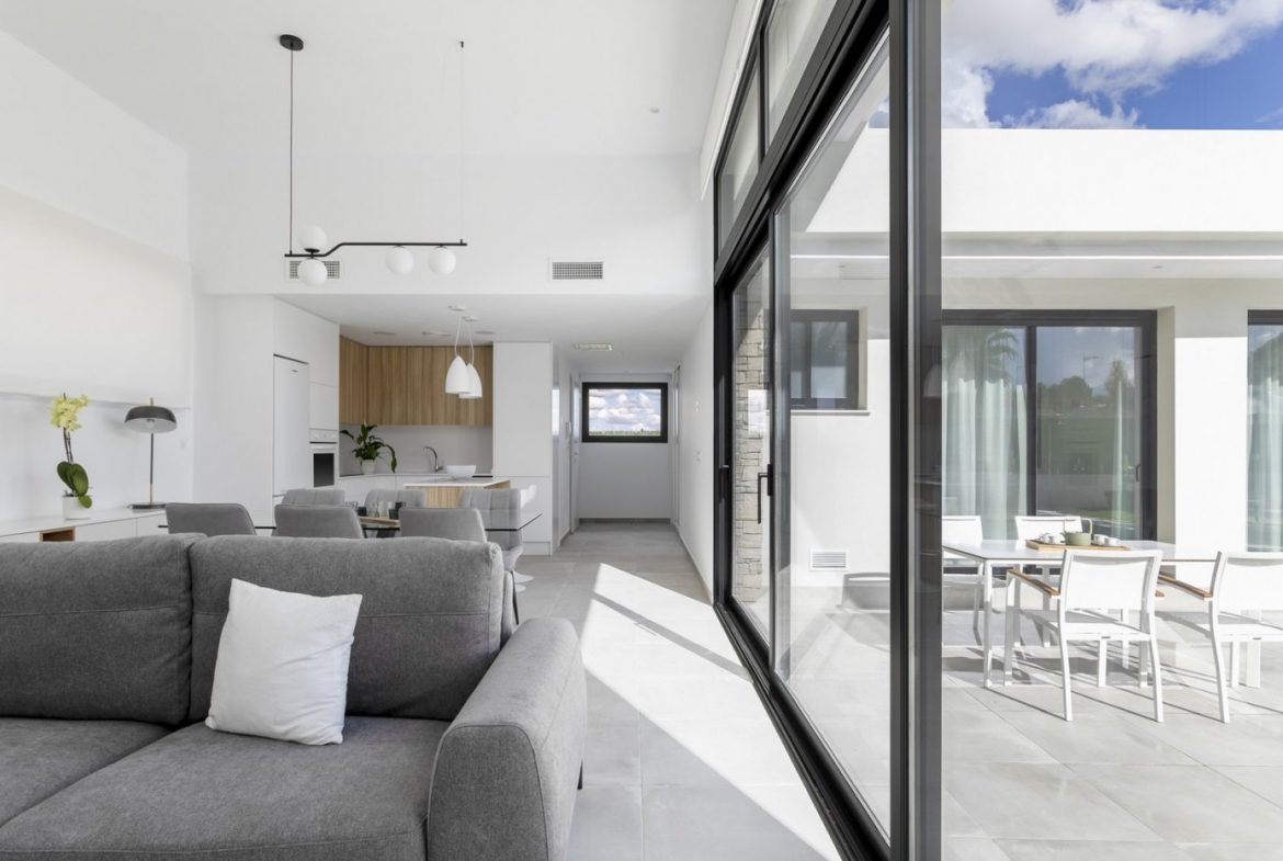 Matowe czarne okna aluminiowe, rolety sterowane silnikiem, pancerne drzwi wejściowe do domu, białe lakierowane drzwi wewnętrzne, system aerotermiczny do produkcji ciepłej wody, blat kuchenny z kwarcu (Silestone), w tym urządzenia elektryczne, preinstalacja klimatyzacji kanałami.